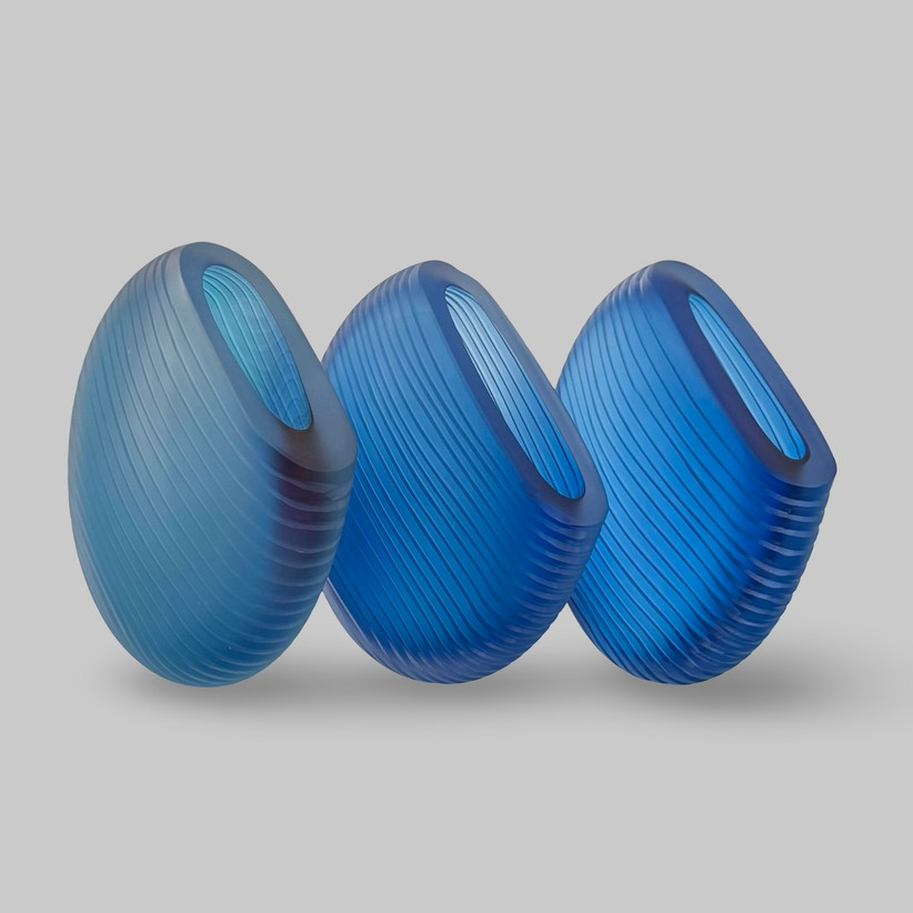 A lunar form defined by clean, textured lines and finished in deep matte blue, combining modern elegance with refined simplicity. Make this a set paired with Lunar Lines 2 or Lunar Lines 3.